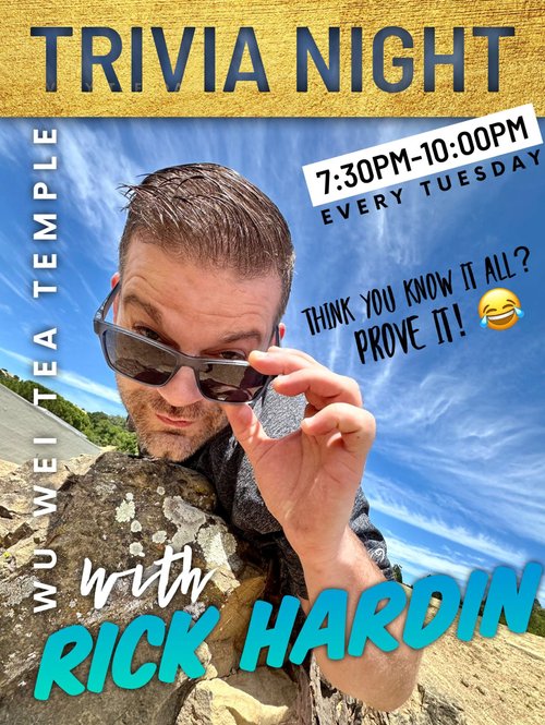 Rick Hardin, the Grand Host of Trivia brings his magic to the Wu Wei every Tuesday night with 4 Rounds of Trivia. Come out and play with us as we explore trivia topics we never imagined. Bring your friends, it’s even more fun to do in a group! $50 in prize money to the winning team! Time to free your inner nerd out and take them down to play at the Wu Wei, every Tuesday night!
