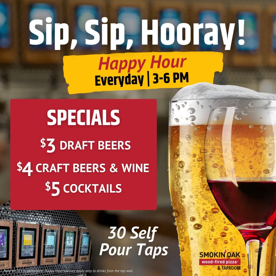 Fuel your brain (and your belly!) at Smokin’ Oak Trivia Night! Tuesdays at 7 with Best Trivia Ever. Wood-fired pizza and winning? Yes, please!