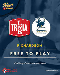 Challenge Entertainment is bringing our #LiveTrivia game nights to Civil Pour! Join us every THURSDAY at 7:00PM! Starting Weekly on 6/5! Your Weekly THURSDAY Night Spot! Bring your friends and form a TEAM at your table, then answer questions together about sports, history, music, science, and many more – all while enjoying the delicious food and drinks! Always #FREE to play! *ONLY on non-paid parking days*